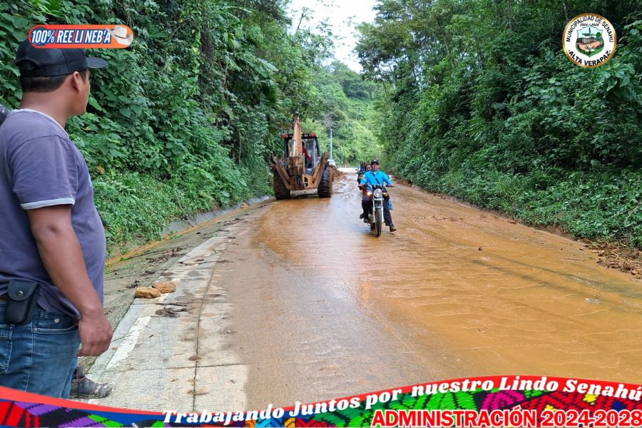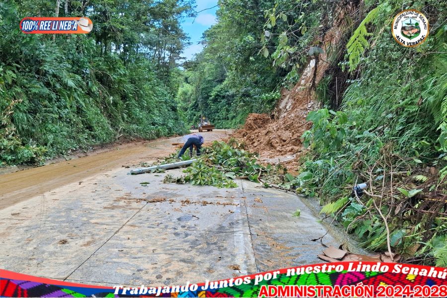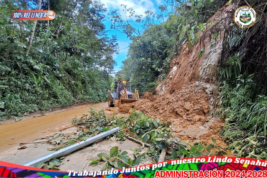 Municipalidad realiza labores de limpieza en la ruta Senahú–Telemán tras deslizamientos de tierra