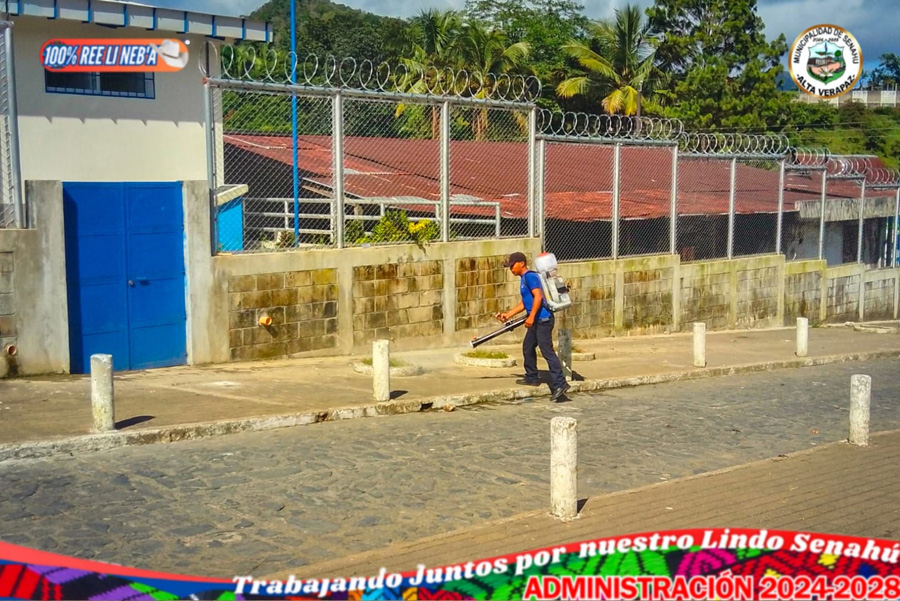 Trabajos para combatir zancudos y moscas en el gimnasio municipal